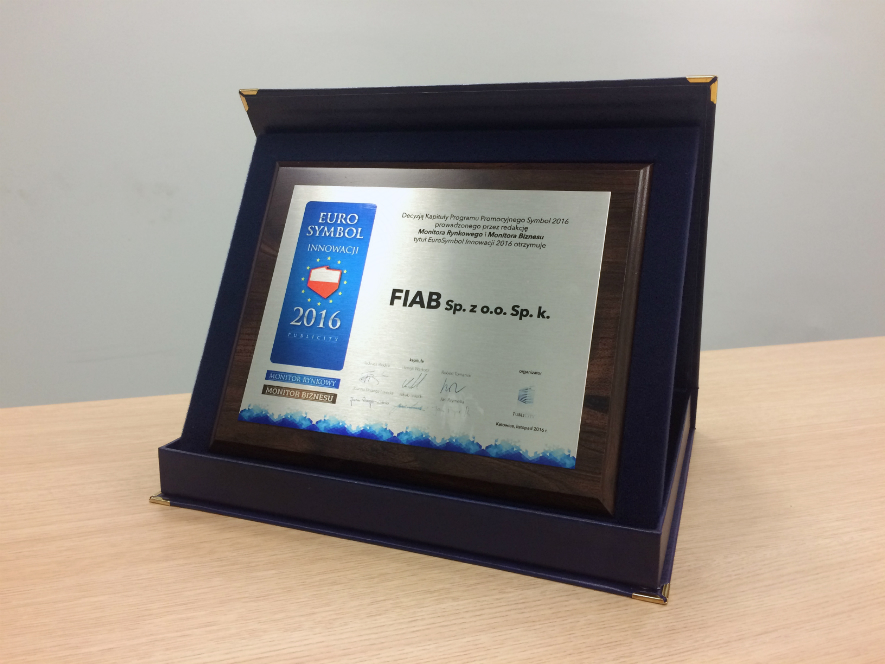 Spółka FIAB Sp. z o.o. Sp. k., jako beneficjent funduszy unijnych, który aktywnie promuje korzyści wynikające z ich wykorzystywania, otrzymała nagrodę EuroSymbolu Innowacji 2016.