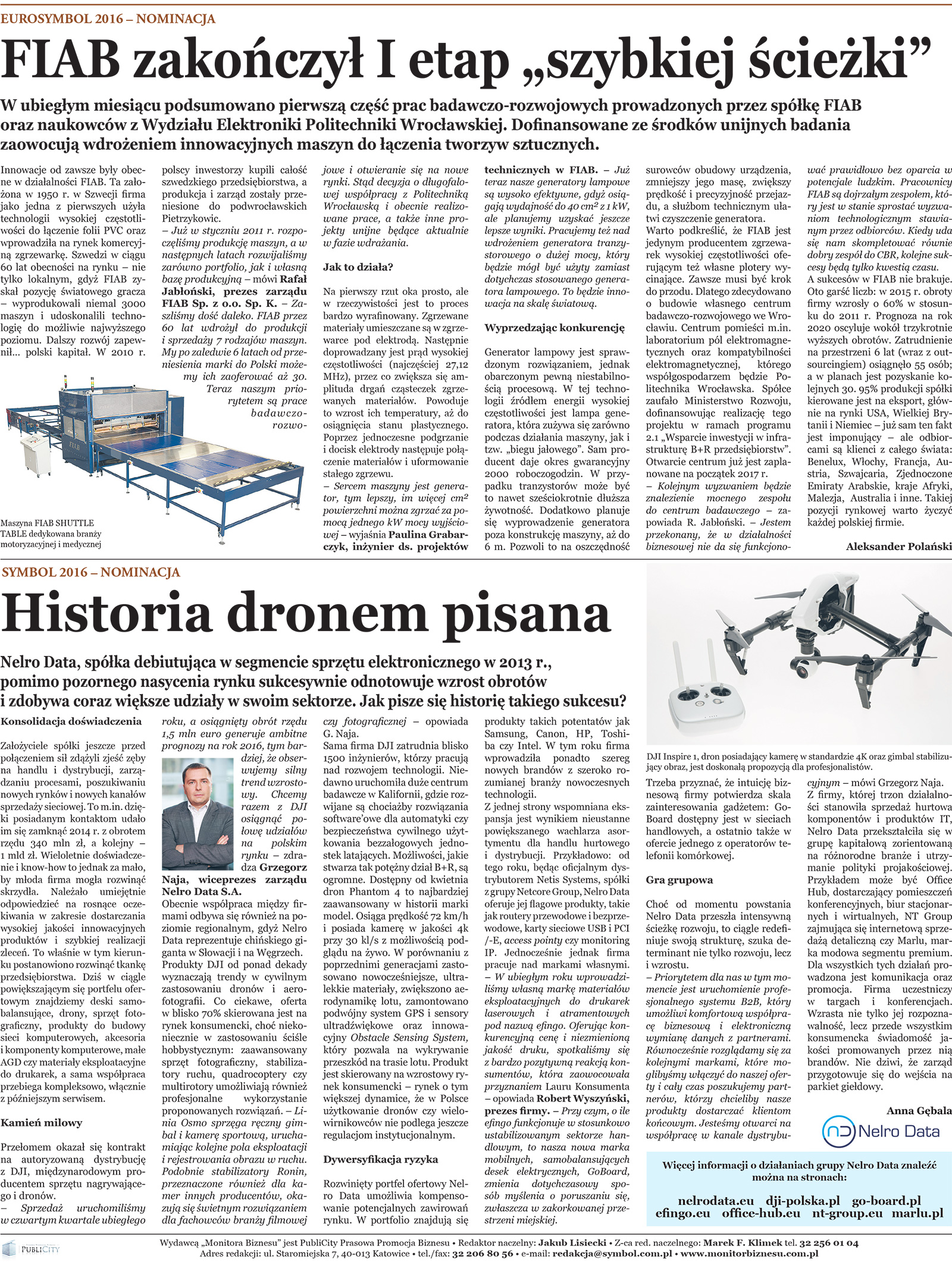 Ukazanie się artykułu związane jest z uzyskaniem przez FIAB nominacji do odznaczenia EUROSYMBOL 2016, jak również z zakończeniem I etapu prac badawczo-rozwojowych prowadzonych przez naszą spółkę wraz z naukowcami Wydziału Elektroniki Politechniki Wrocławskiej. Serdecznie zapraszamy Państwa do dalszej lektury!