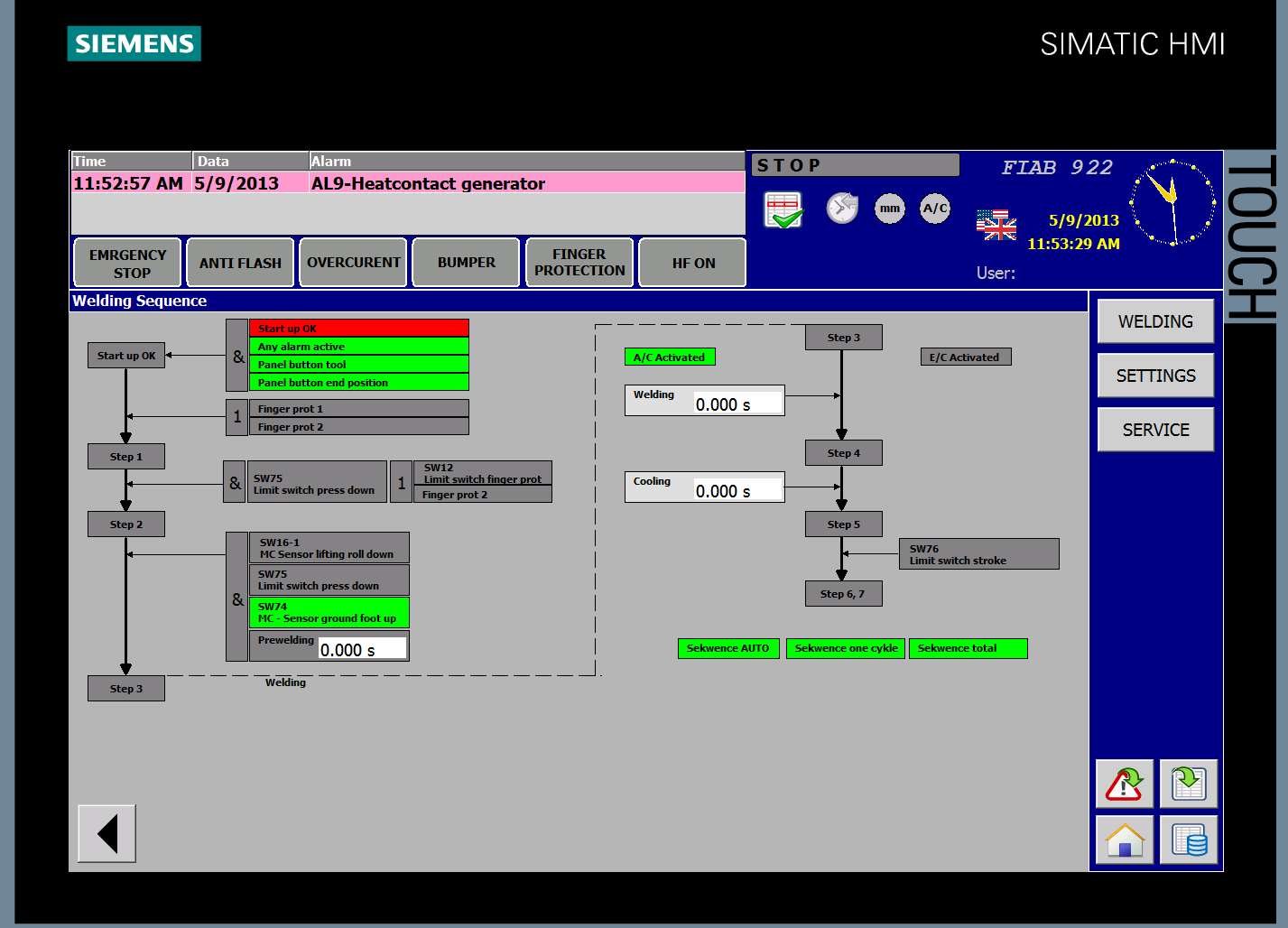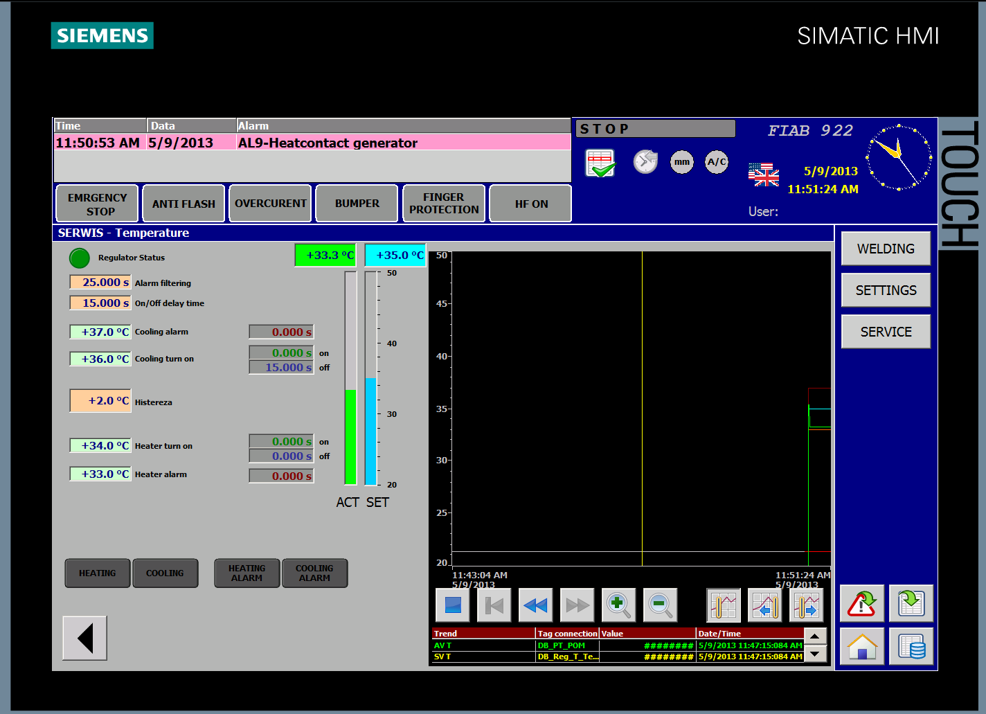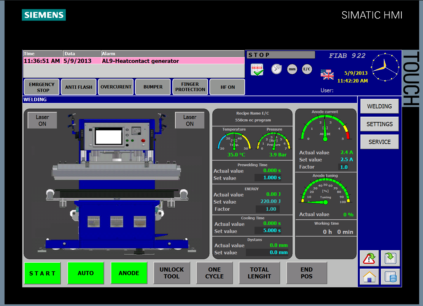 Dzięki zastosowaniu sprawdzonych dotykowych paneli sterujących SIEMENS, obsługa naszych maszyn jest łatwiejsza, bezpieczna i nie wymaga czasochłonnych szkoleń. Inteligentny, zarządzany przez menu interfejs użytkownika jest do dyspozycji naszych klientów w wielu językach.