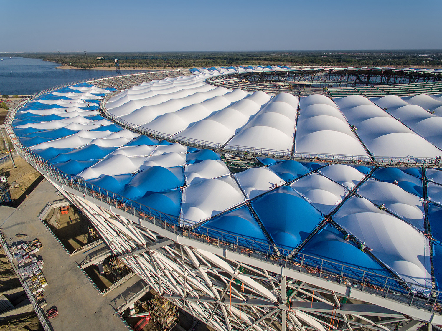 Membranę zadaszającą wykonała firma Dovleti z Krasnodaru, na maszynach: FIAB 900 CLS, FIAB 900 oraz FIAB HPS. Część poszycia będzie wykonana z membrany, a niewielka część wewnątrz – ze szkła.